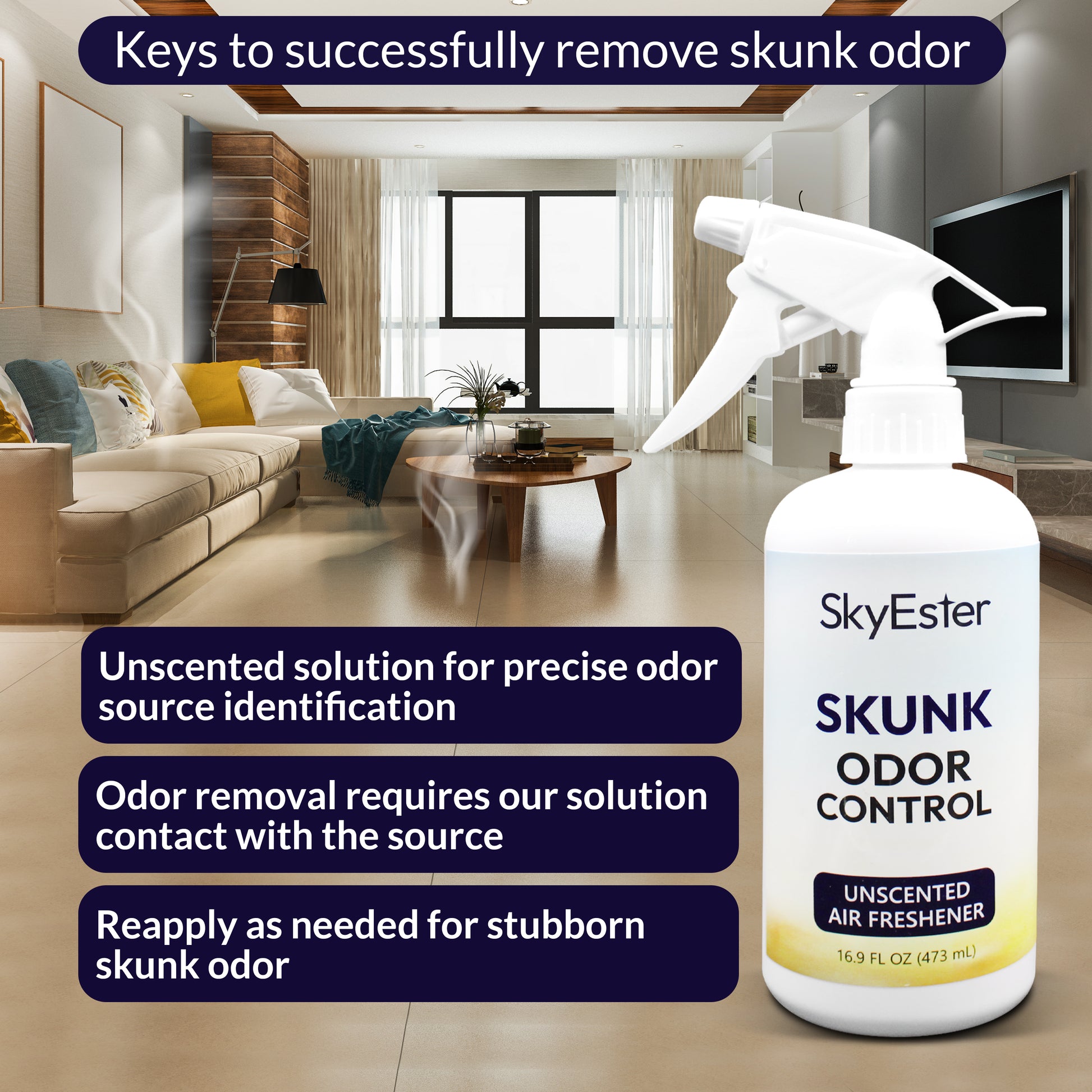 This Unscented Air Freshener does not mask odors – it works its magic when it directly contacts the odor molecules. To effectively eliminate skunk odor, it is crucial to locate the source and allow our solution to make direct contact.
